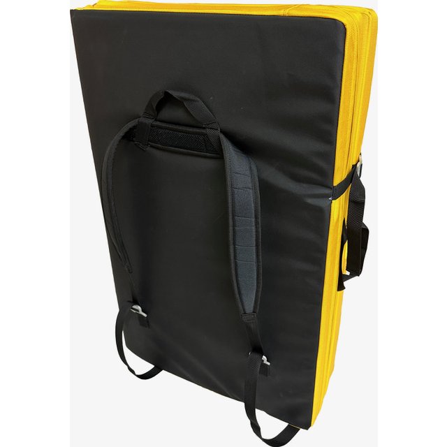This is a classic, two-piece bouldering pad with a hybrid construction where the top/impact part is a compact one piece (see detailed pictures). The FLEA is ideal as your second pad, for circuits in the forests around Fontainebleau and of course also for children.